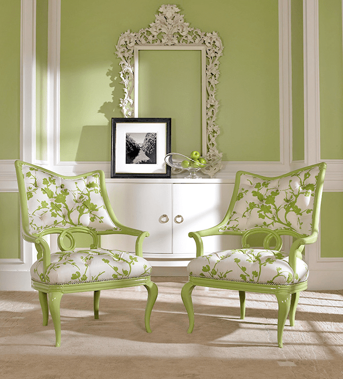 Introduce it in small doses if you're not too sure this is your cup of tea. A pair of chairs finished in a lacquered bright pear green makes a fun and unexpected impact and can be just enough.